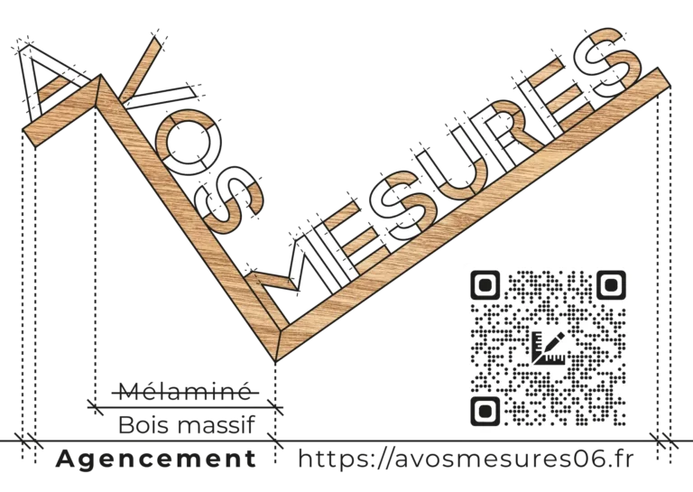 Le total À Vos Mesures / Le SUR-MESURE : Mobilier intégralement sur-mesure, plan, élévations, aménagement 3D, relevé de mesures, installation, QR code, graphisme vectoriel, gif animé (carte animée), logo, flyer… tout est faisable ! (Formulaire en ligne pour transmettre votre demande à notre équipe).